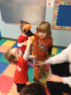 Too rainy to play outdoors. Into Ms. Baucom's room we went.