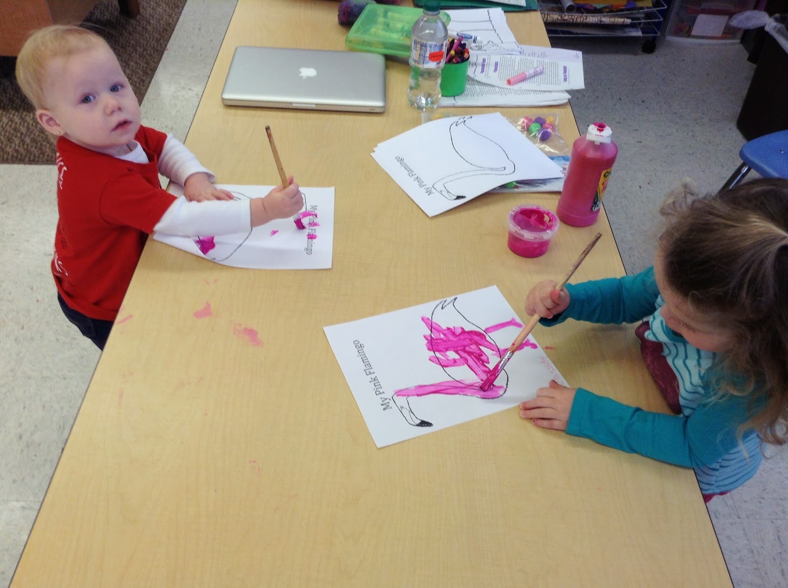 The children used their thinking skills to match like colored shirts and pants. Then they used their fine motor skills to hang the "wash"on the clothes line. The clothes pins were tricky at first, With a little practice, they caught on quickly.